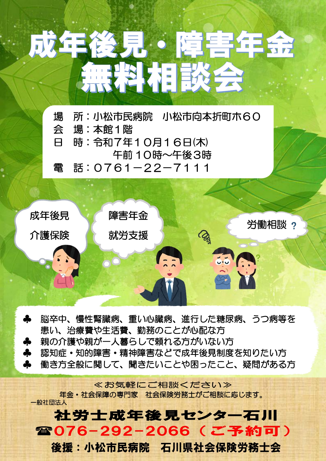 - お知らせ 成年後見・障害年金無料相談会のお知らせ